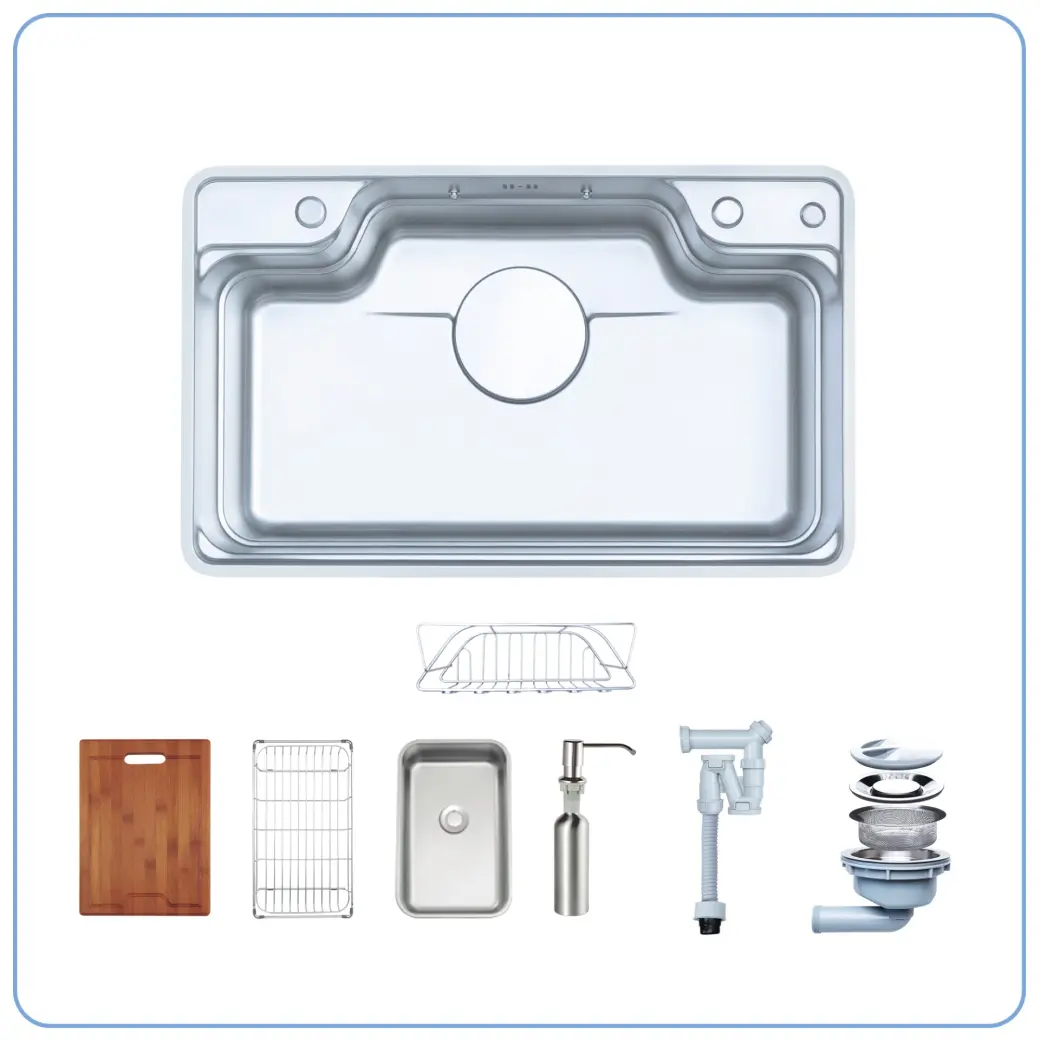 Chậu rửa LIKEN NL792D được trang bị gờ viền hạ bậc thông minh, một giải pháp thiết kế ưu việt cho phép các phụ kiện đi kèm như giá đỡ, khay rửa, thớt có thể di chuyển, trượt và lắp đặt một cách mượt mà, chính xác. Thiết kế này không chỉ tối ưu hóa không gian sử dụng bằng cách tạo ra một hệ thống tích hợp liền mạch, mà còn nâng cao hiệu quả công việc nhờ khả năng sắp xếp linh hoạt và thuận tiện. Nhờ đó, mọi thao tác trong bếp trở nên nhanh chóng và dễ dàng hơn bao giờ hết, mang đến trải nghiệm sử dụng vượt trội và chuyên nghiệp cho người nội trợ.
